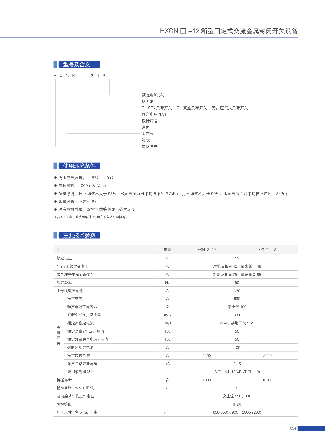 HXGN 0 -12箱型固定式交流金属封闭开关设备(简称环网柜),是为城市电网改造和建设需要而生产的新型高压开关设备。在供电系统中亦作为开断负荷电流和短路电流以及关合短路电流之用,本环网柜配用FZRN25、FZRN21真空负荷开关,操作机构为弹簧机构,该机构既可手动操作,也可电动操作。接地开关和隔离刀配用手动操作机构,本环网柜成套性强、体积小、无燃烧和爆炸危险,还具有可靠的"五防”功能。
