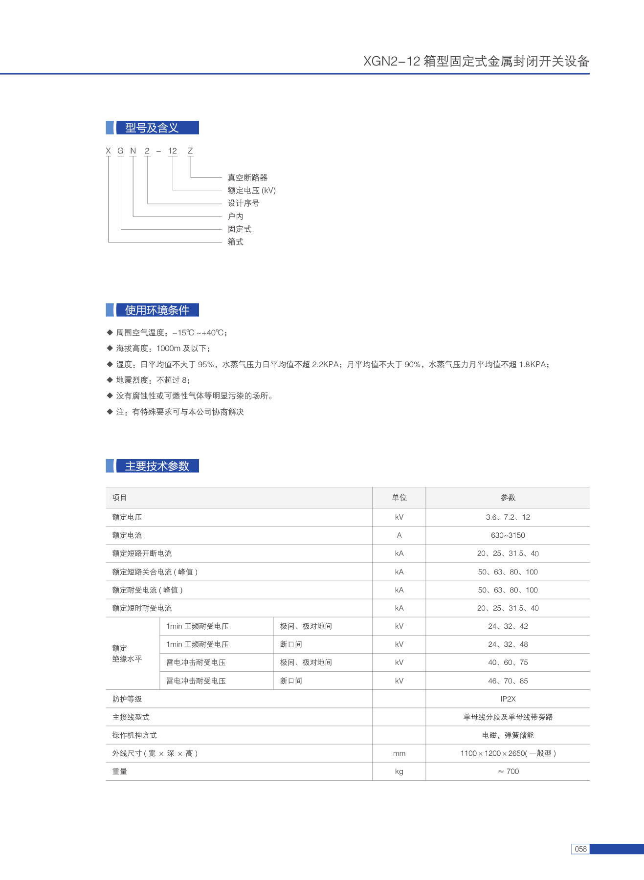 XGN2-12箱型固定式金属封闭开关设备(简称“开关设备”),适用于额定电压为3.6~12kV、50Hz,额定电流630A~3150A三相交流单母线、双母线、单母线带旁路系统,作为接受和分配电能之用。可满足各种类型发电厂变电站(所)及工矿企业使用要求。
