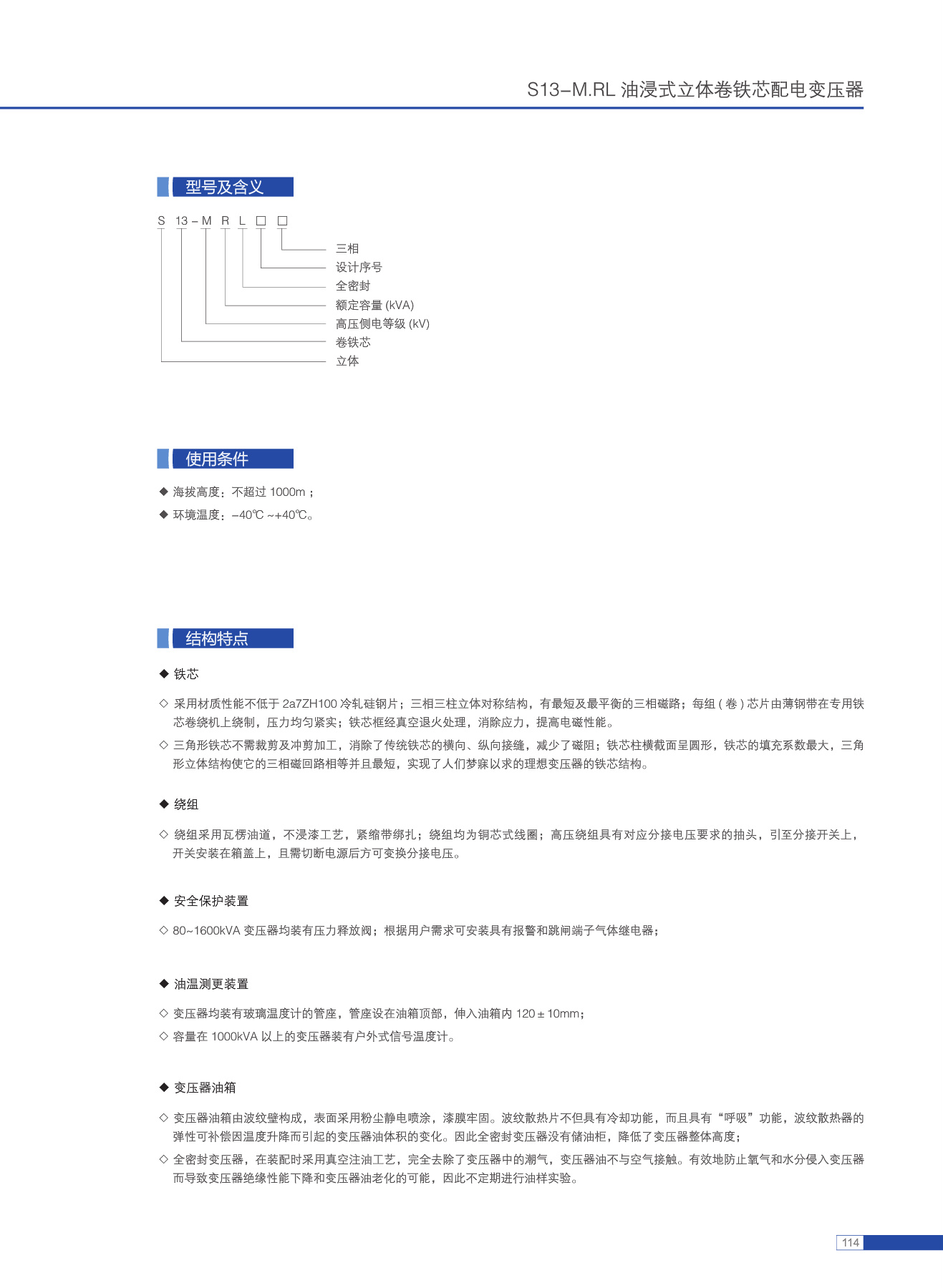S13- M.RL 80~1600/10型全密封油浸式变压器适用于交流50Hz、额定工作电压10kV及以下的电力系统中,作为石油、冶金、化工、纺织、轻工等企业及粉尘较大场所的配电变压器。